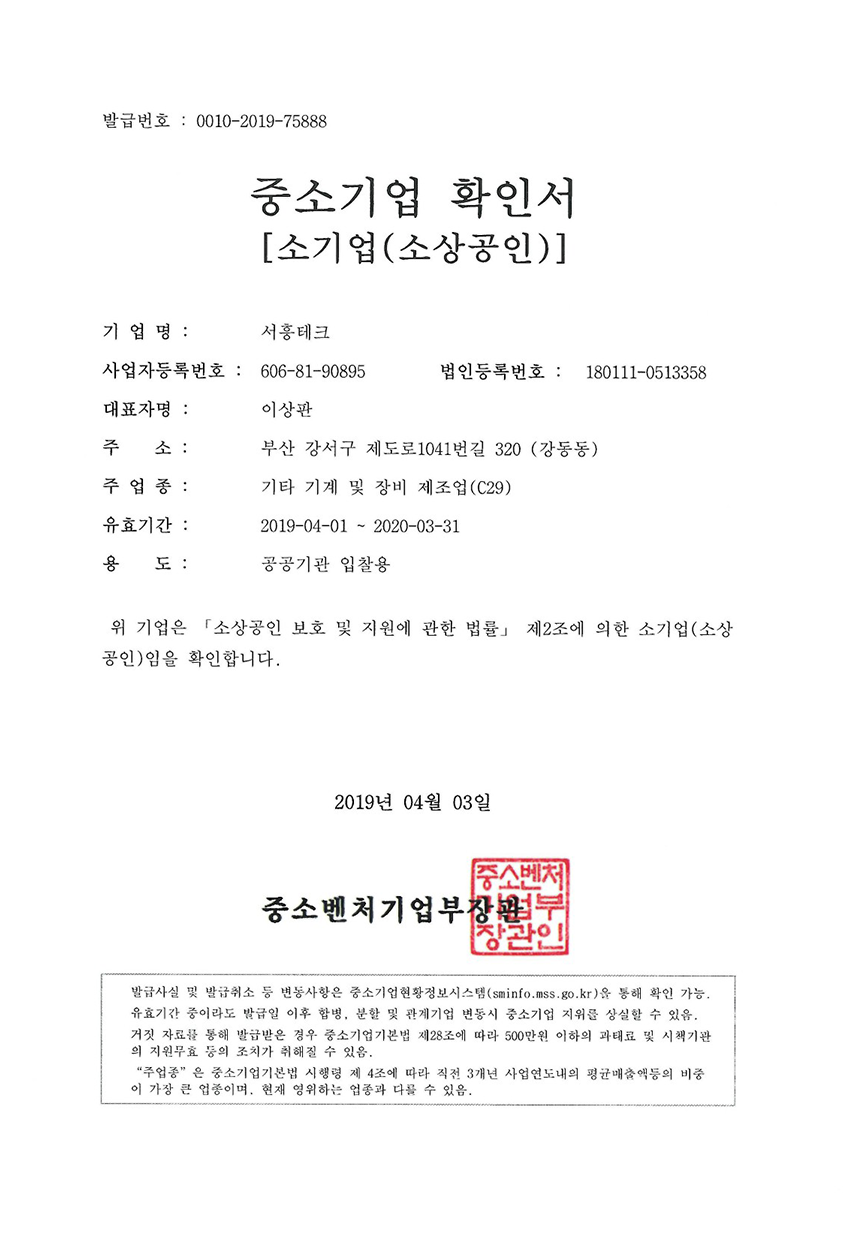 중소기업 확인서