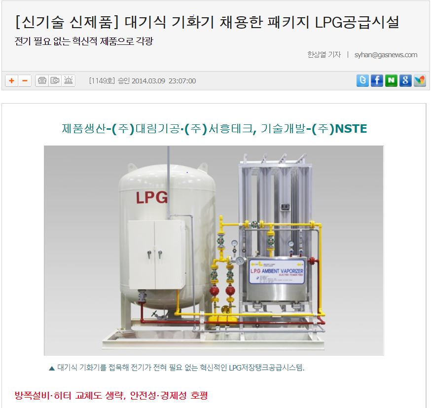 [신기술 신제품] 대기식 기화기 채용한 패키지 LPG공급시설 전기 필요 없는 혁신적 제품으로 각광