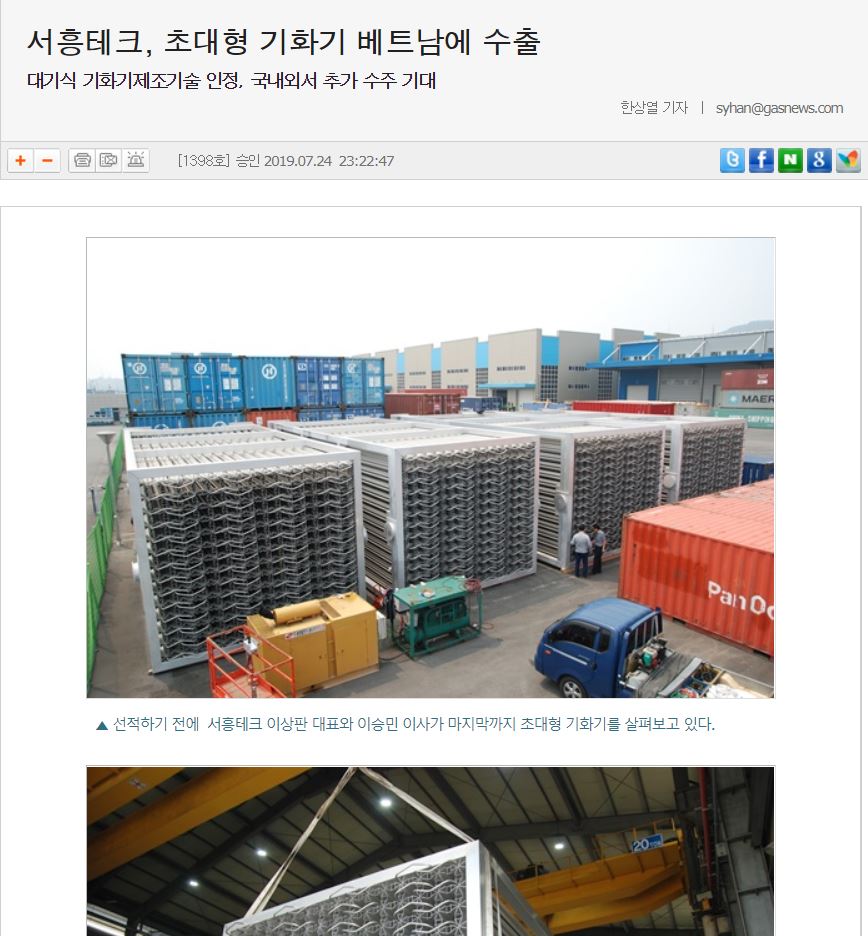 공지사항 서흥테크, 초대형 기화기 베트남에 수출 대기식 기화기제조기술 인정, 국내외서 추가 수주 기대 페이지 정보 작성일21-05-15 10:06 본문 서흥테크, 초대형 기화기 베트남에 수출 대기식 기화기제조기술 인정, 국내외서 추가 수주 기대 관련링크 http://www.gasnews.com/news/articleView.html?idxno=88031 508회 연결 목록 이전글서흥테크, 초대형 기화기 제조기술로 재도약 꿈꿔 21.05.15 다음글[기업탐방] 가스설비제조·시공전문업체 (주)서흥테크 21.05.15